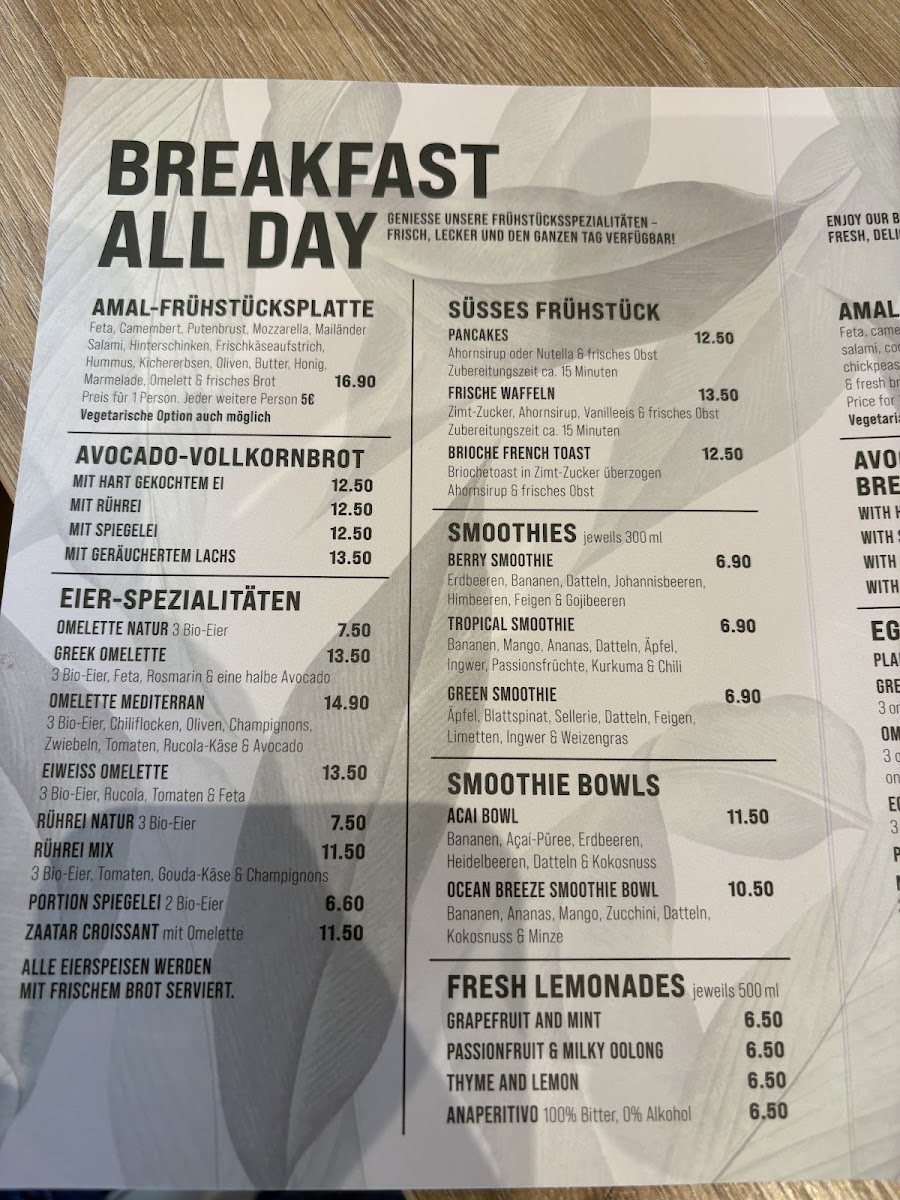 AMAL Café/Bäckerei - Rosenkavallierplatz Menu